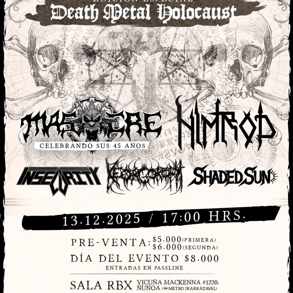 El Sábado pasado, en la ciudad de Santiago se realizó la gran celebración por los 40 años de la Banda Pentagram, que como vemos tambien fue el aniversario de varias otras bandas de la escena metalera chilena, comezando su festejo la banda Massacre con la realización de una nueva versión del Death Metal Holocaust el pasado 13 de Diciembre, en la que también participó Nimrod junto a nuevas camadas del Metal actual, las bandas Insecurity, Keorgoroth y Shaded Sund