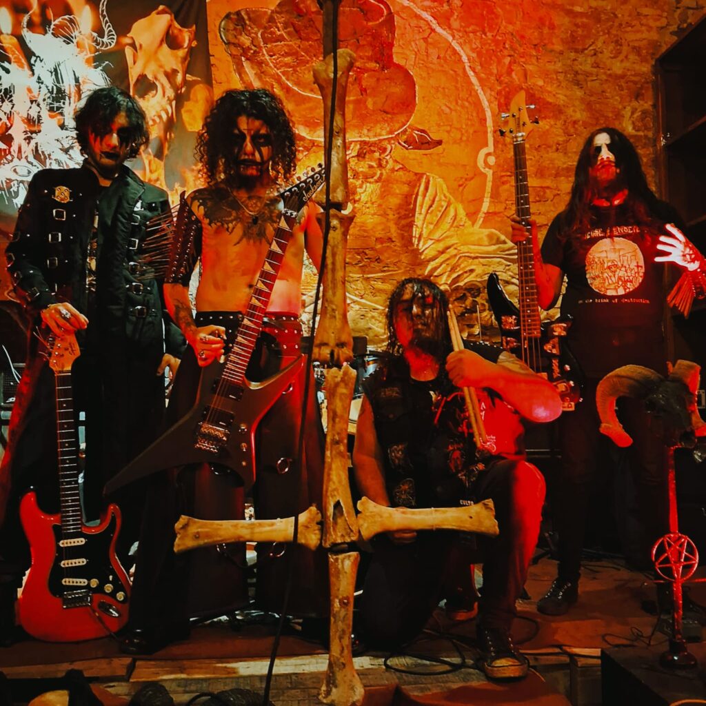 Por eso cada CEREMONIA que damos la hacemos con nuestro ULTRA pensamiento, engendrado desde los inicios, sin salirnos se ese círculo LUCIFERINO, que va profesado con el pensamiento liberal que tiene la banda, la adquisición de sabiduría, poder y energismo, en lo cual es por eso que todo esta TRABAJADO, con libertad, fidelidad, respeto, siempre haciendo mención al satanismo, luciferismo, demonologia, con alagos a deidades, demonios, entidades del bajo astral, guardianes, desencarnados, brujas, brujos o muertos, lo cual OSCURAMENTE nos enfocamos en manipular la sensación de cada uno, de cada oyente, de cada seguidor, de cada persona, generandoles cambios de ánimos al escucharnos, el odio, la ira, la perturbación, adrenalina, tristeza, depresión, hundirlos junto a nosotros a lo más recóndito y profundo del abismo para así levantarlos de entre los muertos y así a nosotros ayudarnos a descender, sumado el caos visual que tenemos, porque también en cada CEREMONIA o RITO impactamos visualmente con nuestra entrada en clima, a nuestro altar verán huesos humanos, de animales, objetos profanados, carne putrida, cabezas de cerdo completas, sangre y transes.
