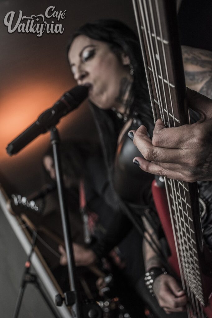 INFERNALIA MORBIDA: Sí, me siento cómoda tocando el bajo con púa porque me permite lograr una técnica más agresiva y definida. La púa me aporta precisión y contundencia que encaja mejor con la velocidad del blackened death metal.